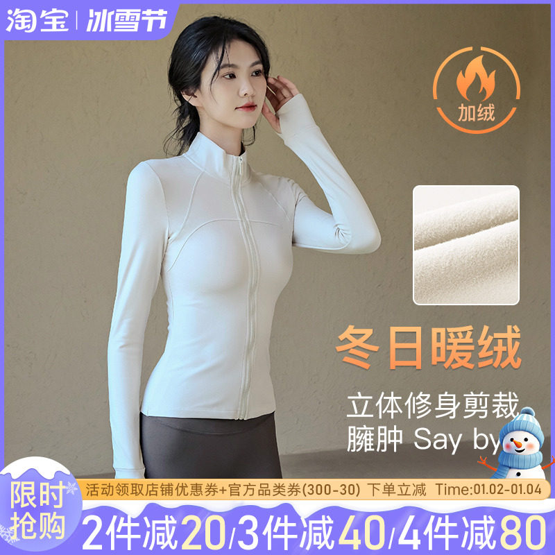 瑜伽服女秋冬季加厚加绒防风立领拉链运动外套修身显瘦跑步健身服