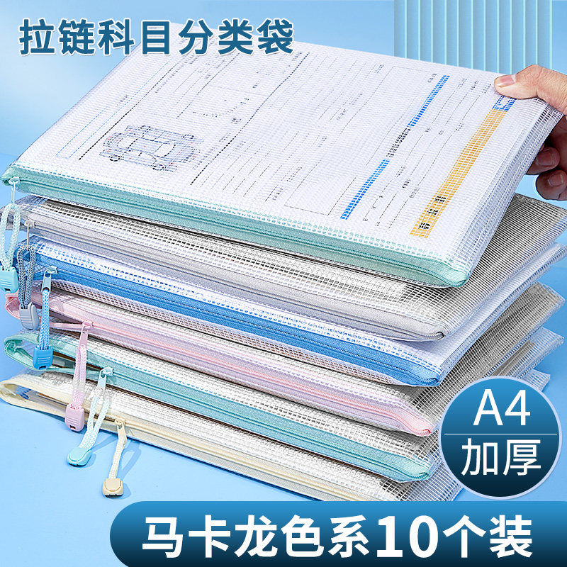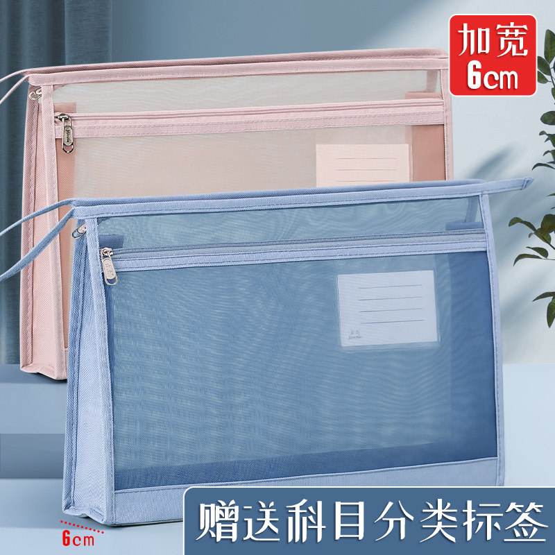 A4初中生学科科目分类袋分科文件袋拉链式双层大容量高中生透明网纱试卷资料袋书袋收纳袋书本专用作业袋七科