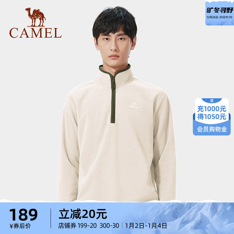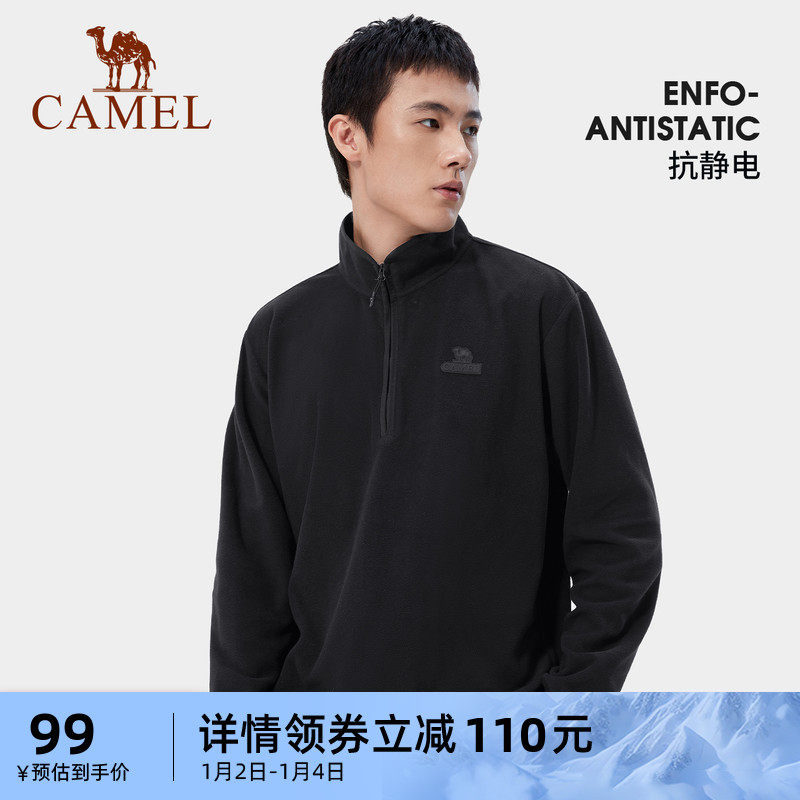 骆驼户外半拉链抓绒衣女2023冬季摇粒绒保暖半拉链打底卫衣男