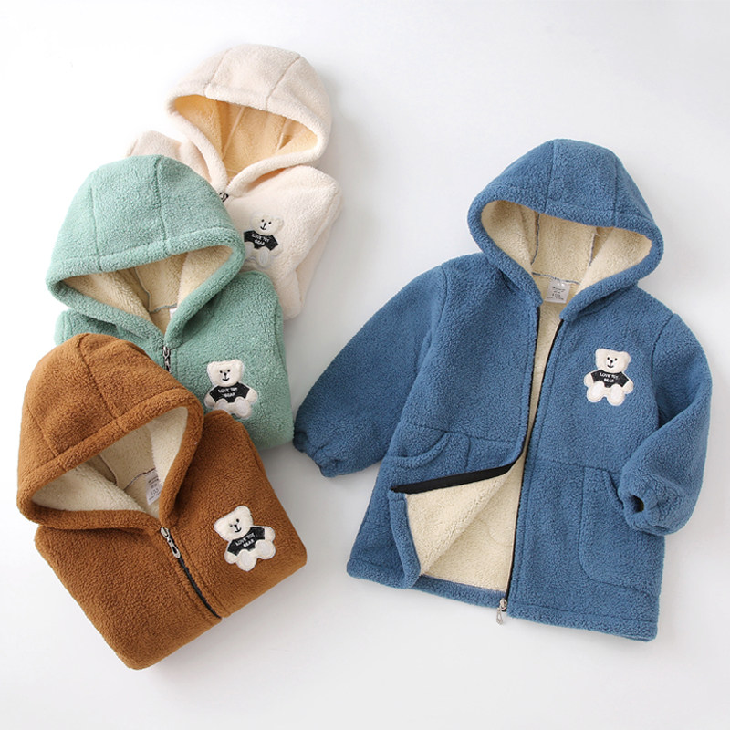 新秋冬男女宝宝加绒保暖防脏洋气带帽拉链护衣外套羽绒服儿童罩衣