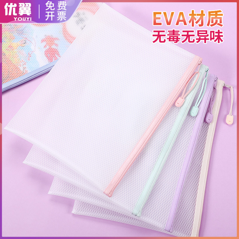 EVA透明网格文件袋厚A4科目分类袋大容量塑料防水拉链式学生拎书袋补习袋文件夹资料试卷收纳袋作业袋补课袋