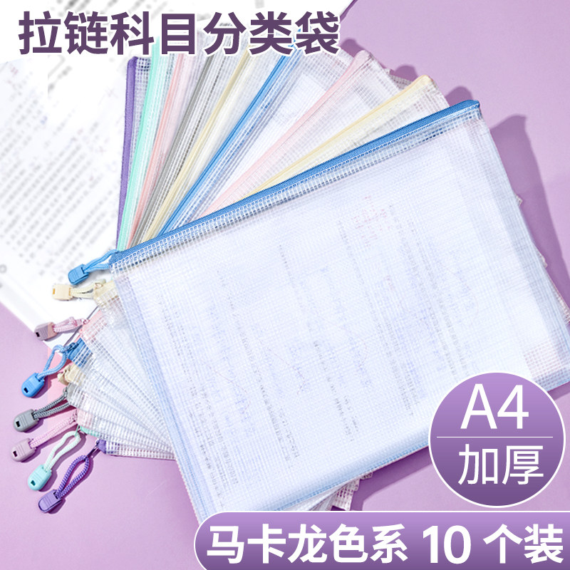 a4文件袋拉链式透明塑料资料袋学生用大容量文件夹收纳网格拉链袋文具试卷收纳袋档案袋公文袋办公用品批发