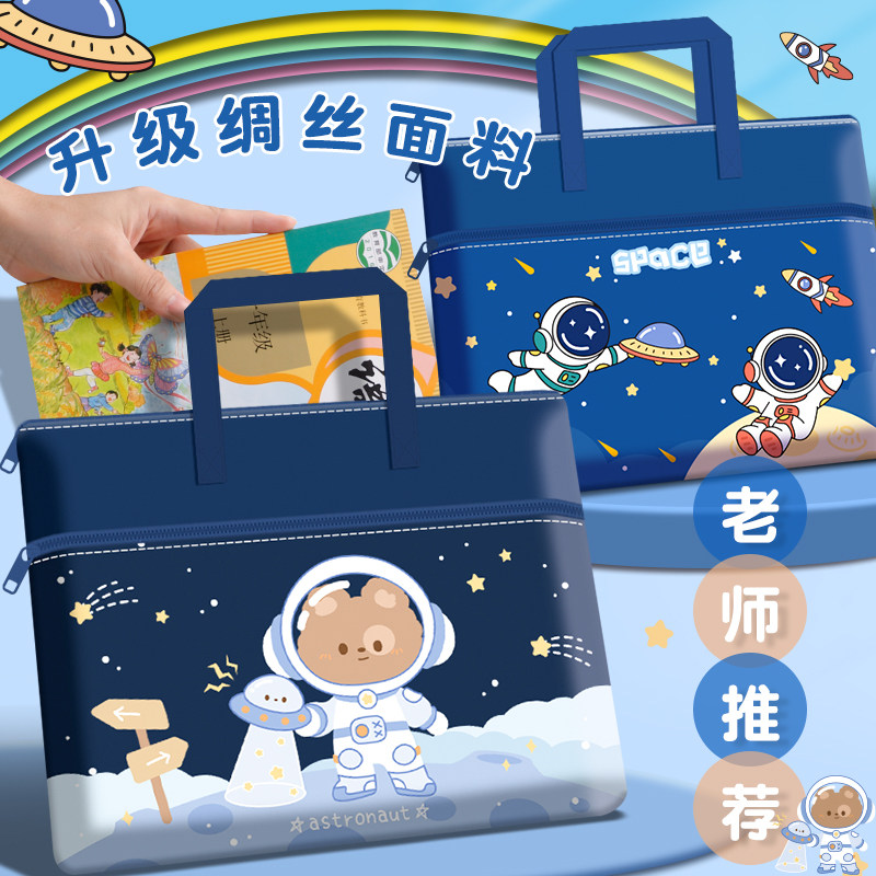 学生手提袋拎书袋补习袋补课包手提包美术袋女童男孩帆布作业袋文件袋小学生用一年级拉链式试卷袋书本收纳袋