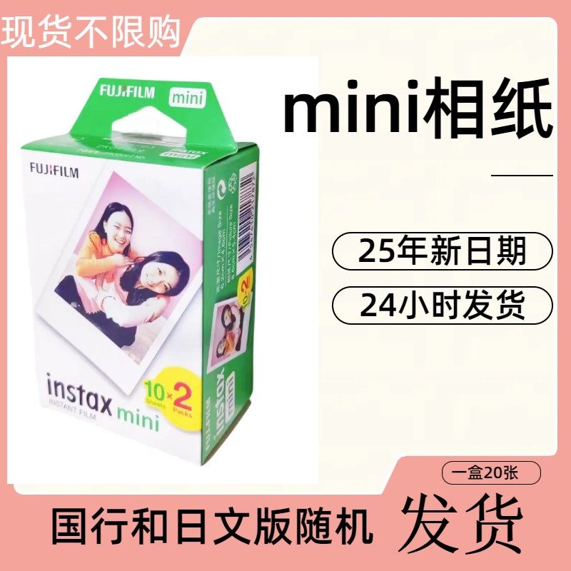 富士拍立得mini11/12/7白边相纸20张 3寸通用一次成像照相机胶卷