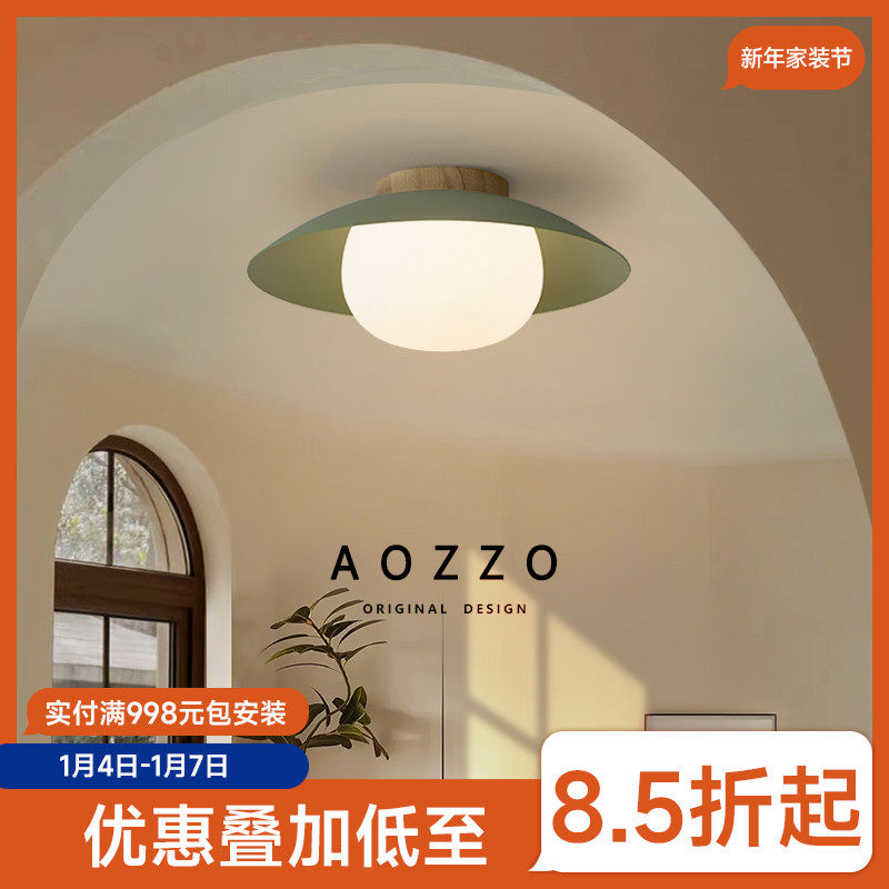 奥朵和风碗创意阳台灯日式玄关入户吸顶灯原木风衣帽间过道走廊灯