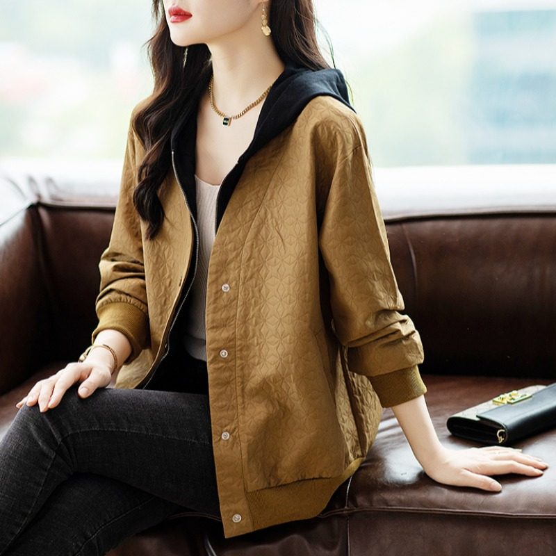 九月陌墨大码假两件外套女士装春秋2023新款爆款夹克风衣百搭上衣