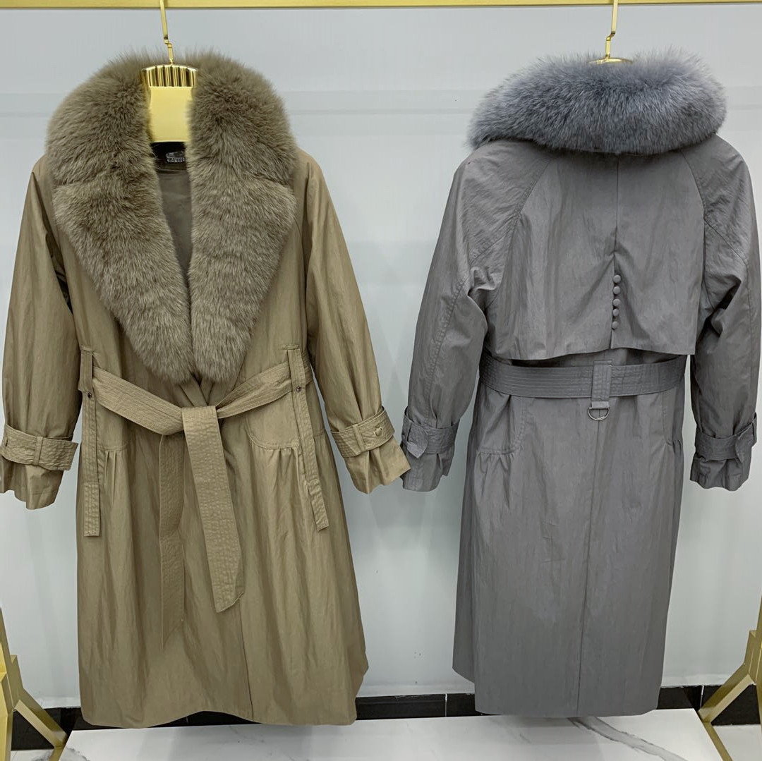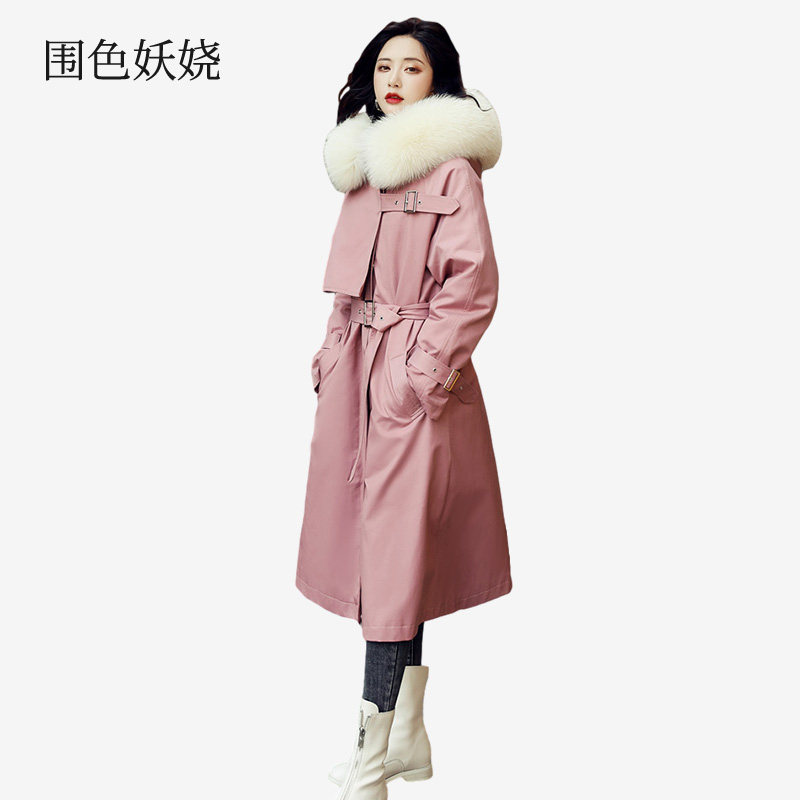 风衣派克服女新款皮草外套女大衣獭兔内胆可拆卸狐狸毛领皮毛一体