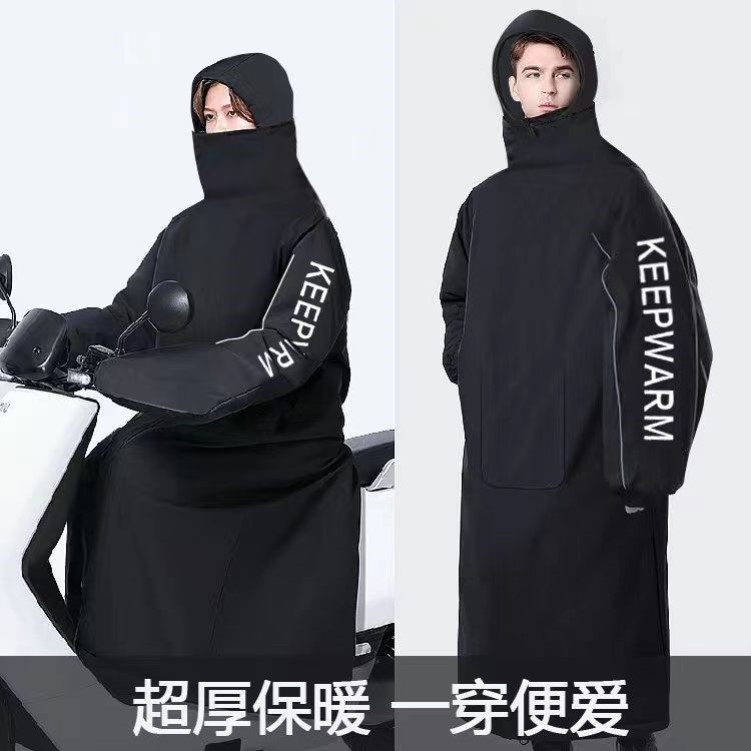 摩托车挡风衣超厚冬天骑车保暖神器护膝电动车骑行长款加绒盖防水