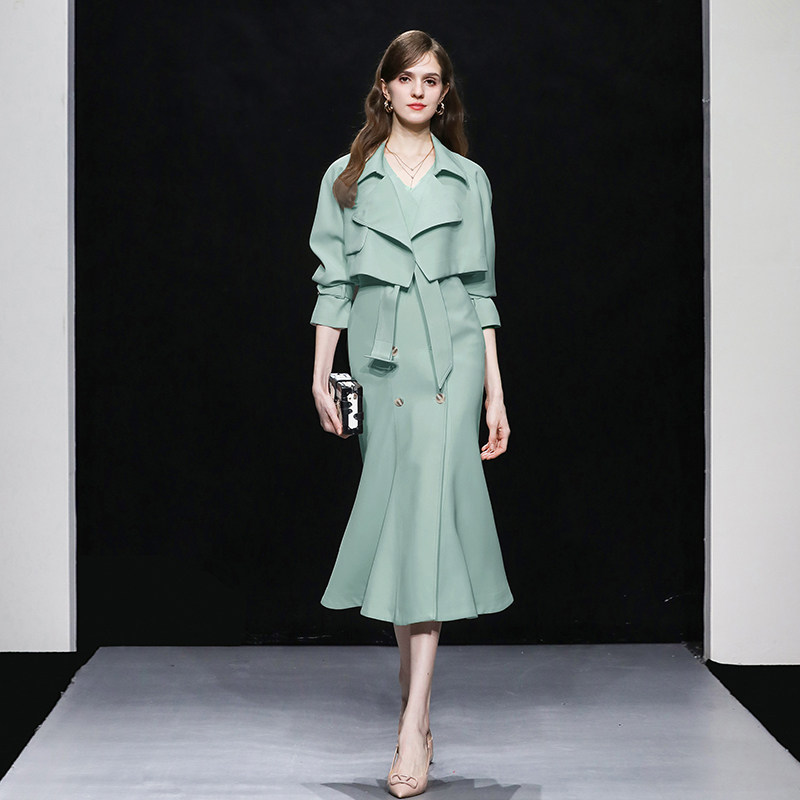 2024春装新款法式优雅气质简约短款风衣+鱼尾马甲韩剧女主两件套
