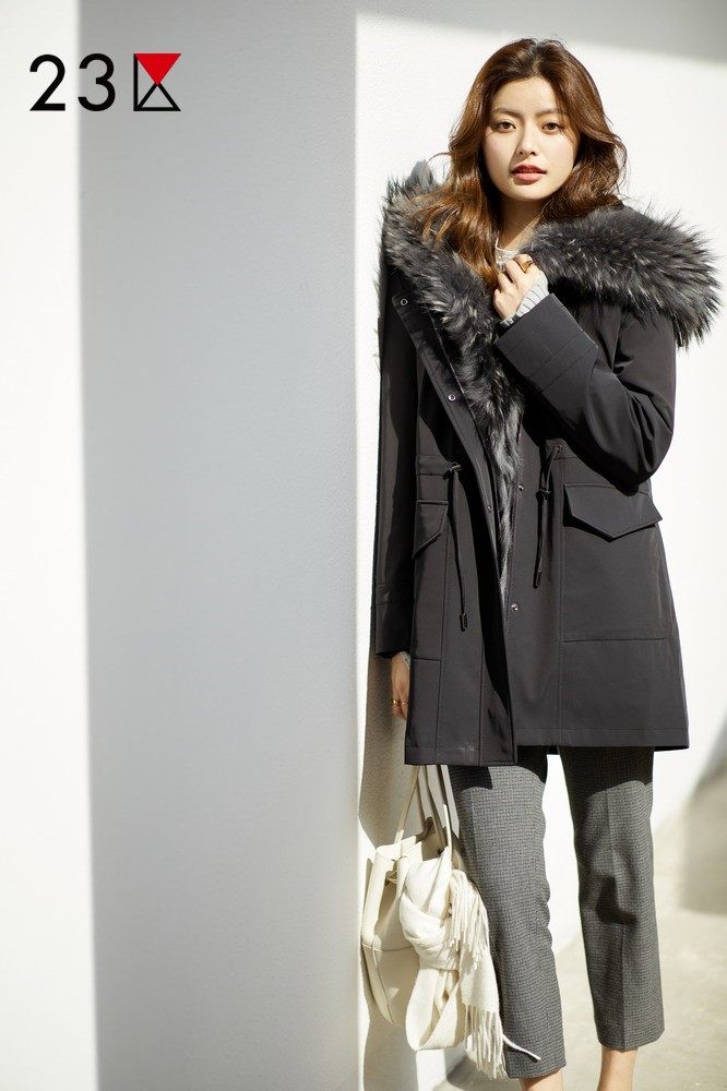 23区日系冬季通勤獭兔皮二合一中长H型派克大衣风衣棉衣商场同款