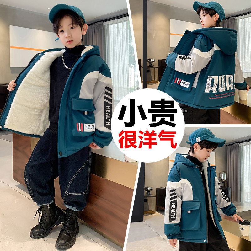 中大男童春秋冬款派克棉服外套儿童装男孩加绒洋气夹棉风衣潮8岁9