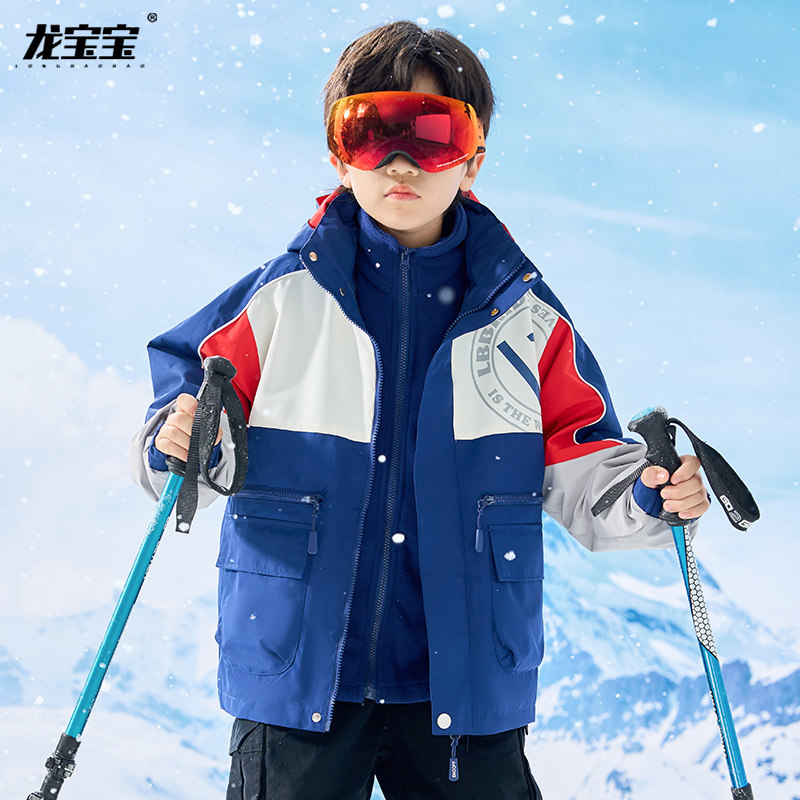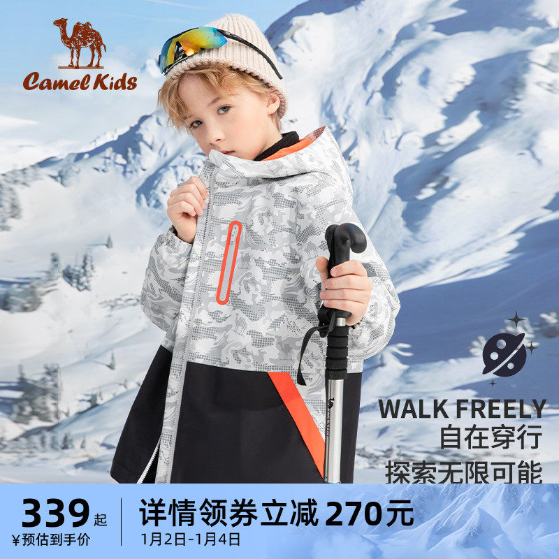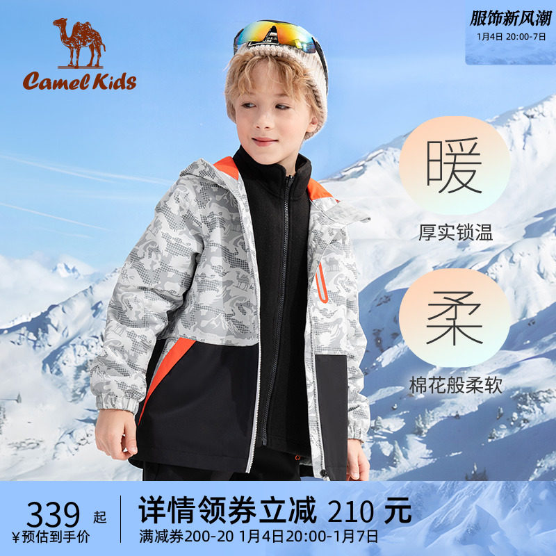 骆驼儿童冲锋衣三合一2023冬季大童户外防水防风衣男女童保暖外套