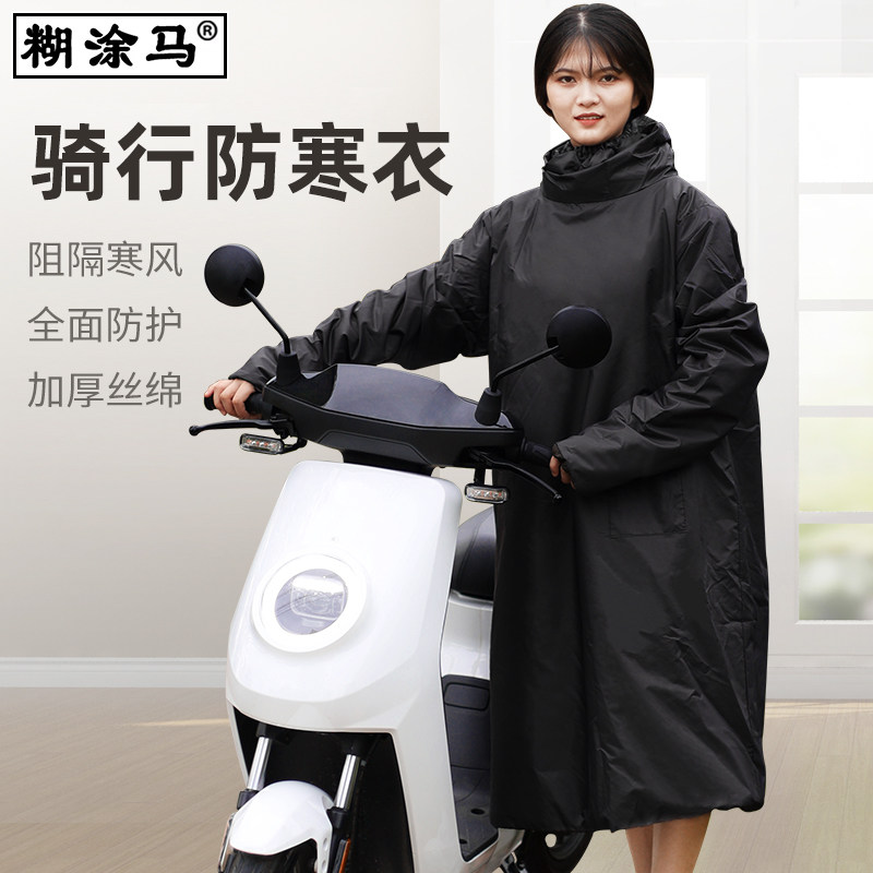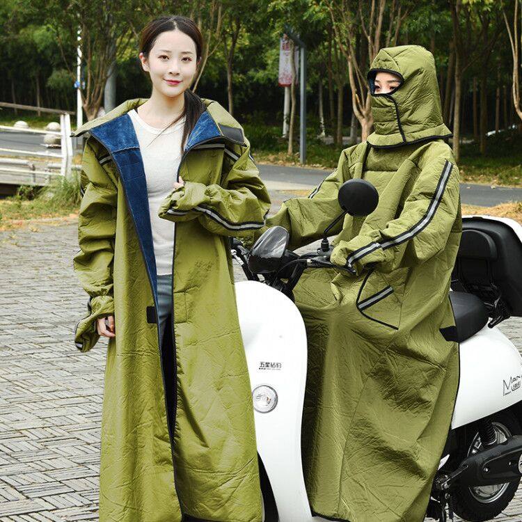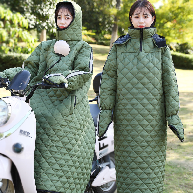 电动车挡风被冬季加绒加厚挡风衣电瓶摩托电车骑车防风衣反穿衣女
