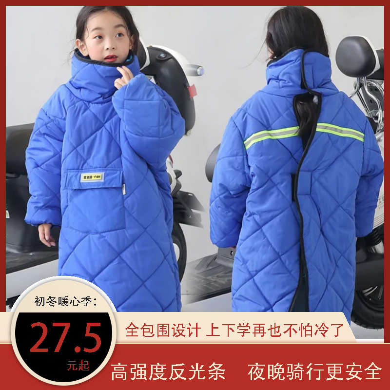 电动车挡风被冬季亲子加厚保暖后座电瓶车挡风衣罩摩托骑行防寒服