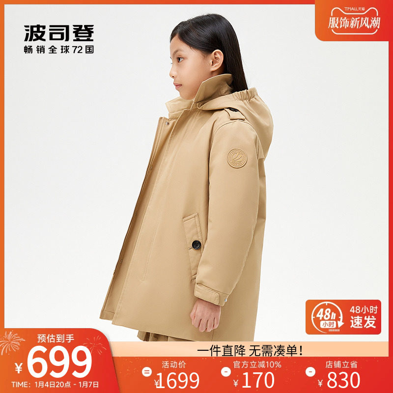 波司登儿童户外风衣羽绒服女大童中长款冬装英伦时尚有型外套鸭绒