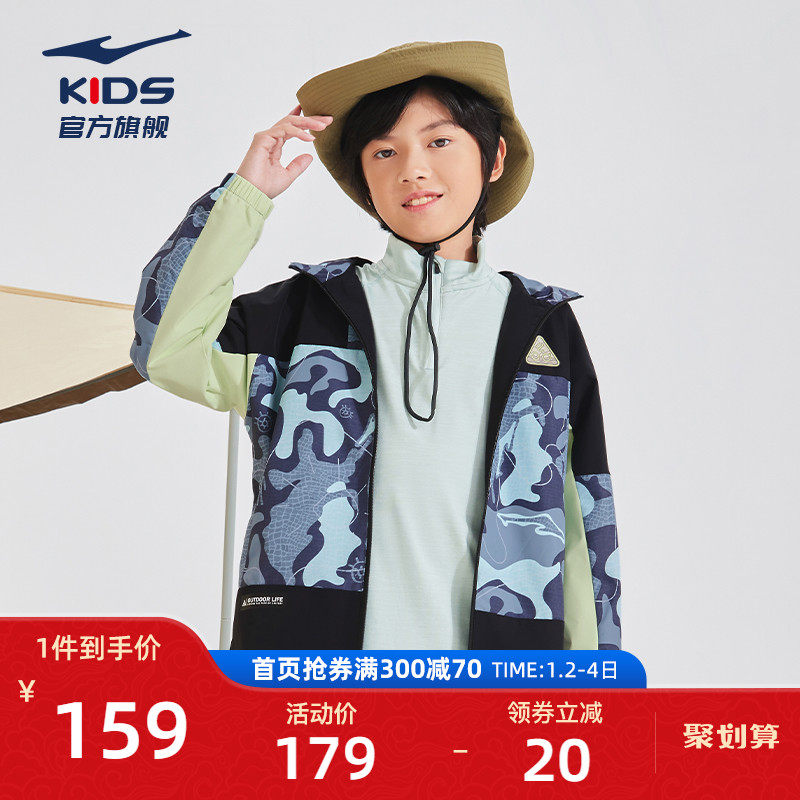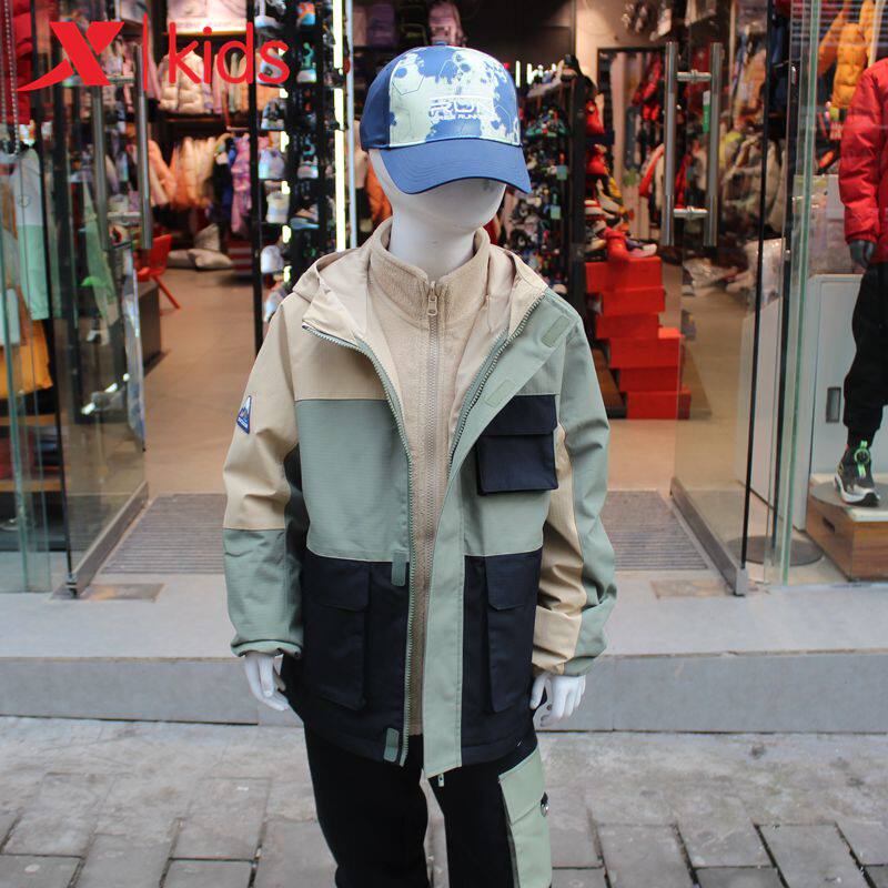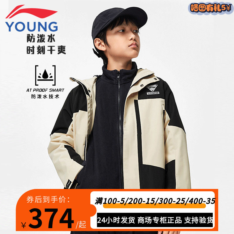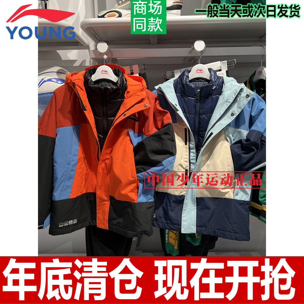 李宁童装男童三合一冲锋衣2023冬棉内胆保暖户外防泼水风衣23011