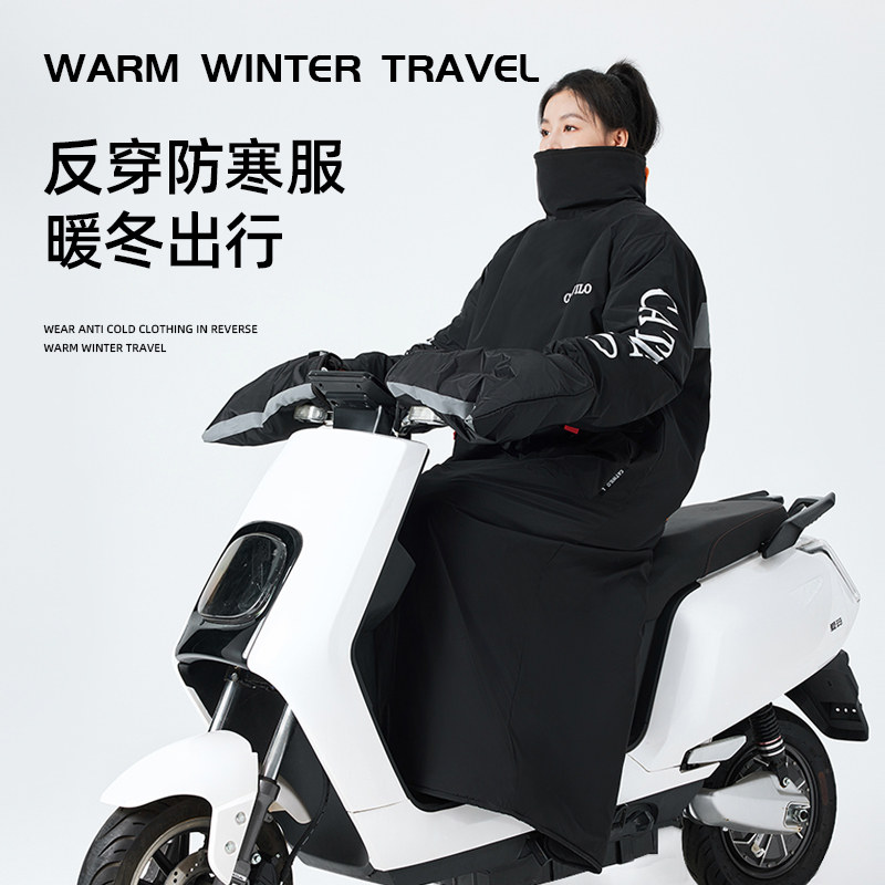 电动车挡风被冬季加绒加厚摩托车骑行保暖防寒服防水骑车挡风衣