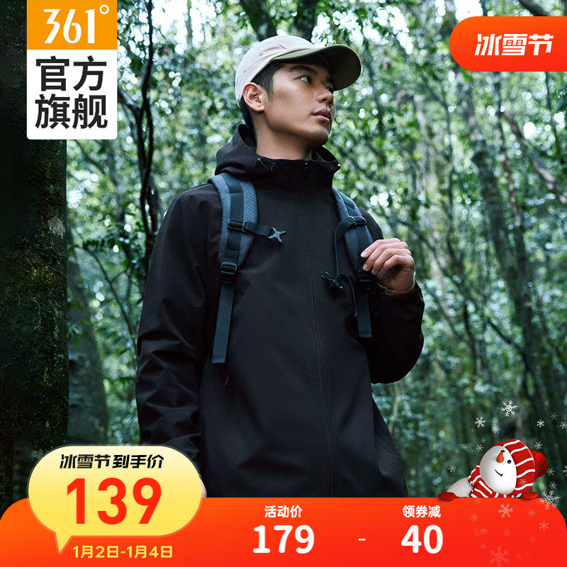 361运动外套男2023秋冬冲锋户外防风防水梭织风衣连帽登山服夹克