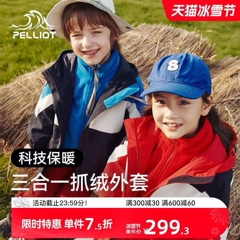 伯希和儿童三合一抓绒防风衣男女童秋冬加绒外套两件套保暖童装
