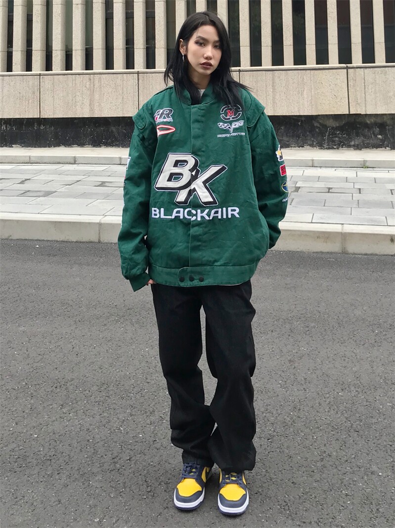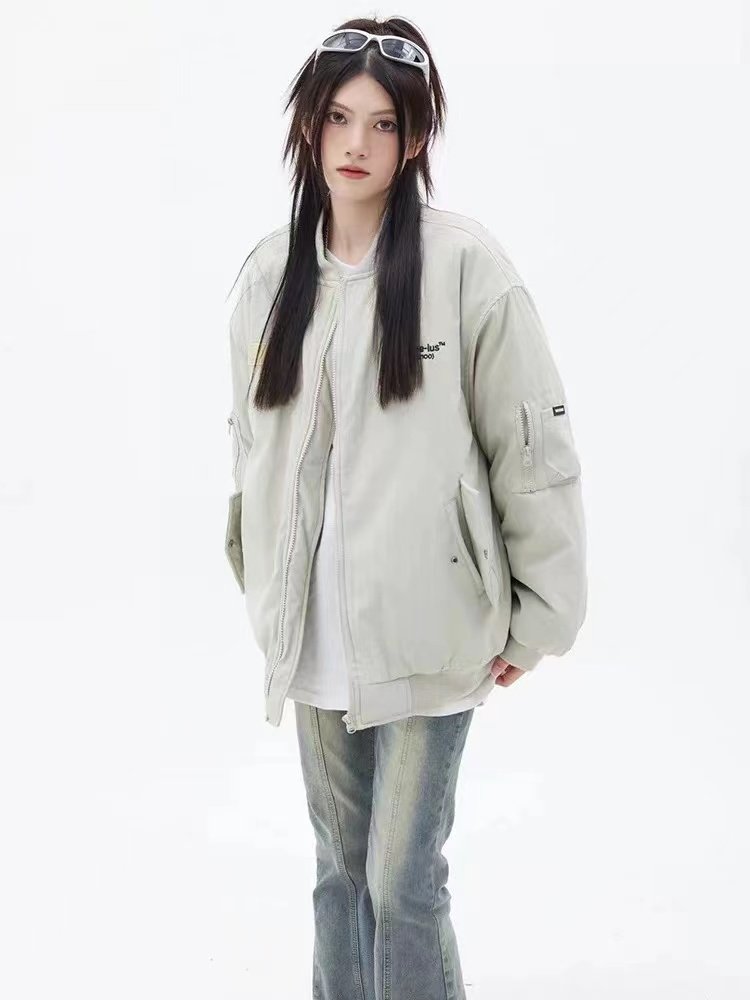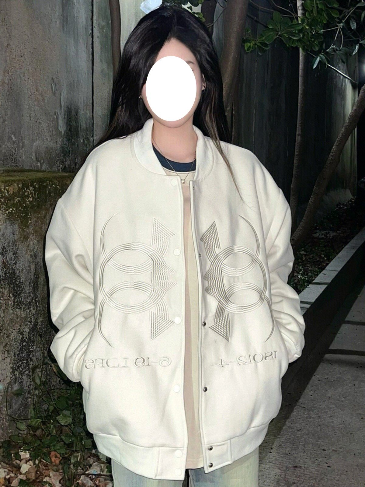 美式vintage外套女米白色高街棒球服外套情侣款飞行员夹克上衣