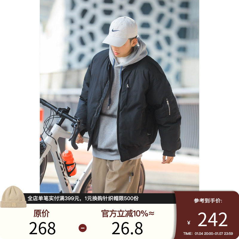官方正品冬季羽绒服男士休闲飞行员夹克棒球服保暖90白鸭绒外套潮