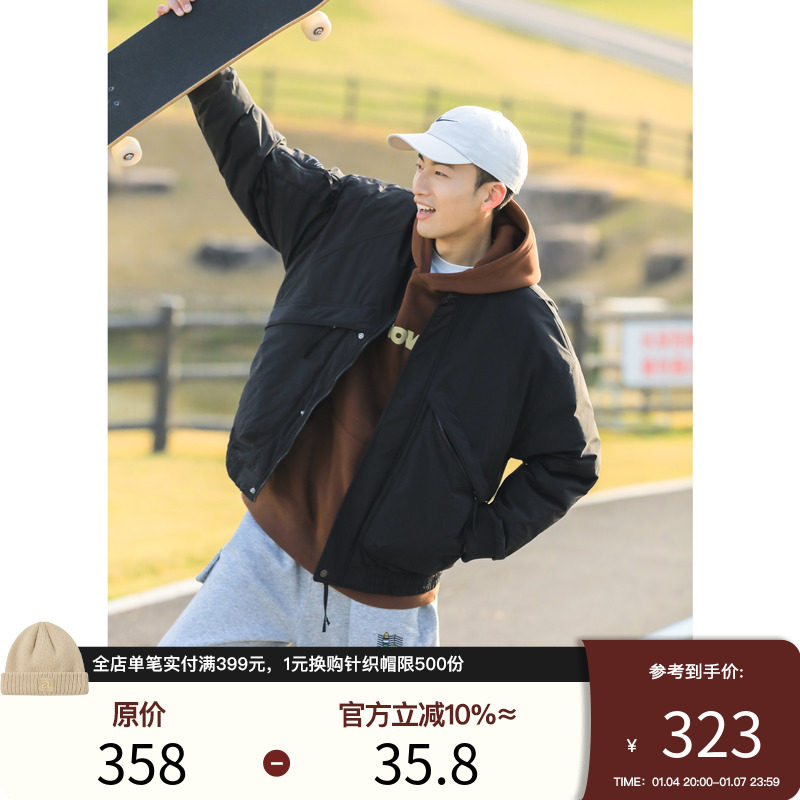 电池熊猫丨鸿星尔克冬季男士工装飞行夹克风衣运动休闲外套上衣男