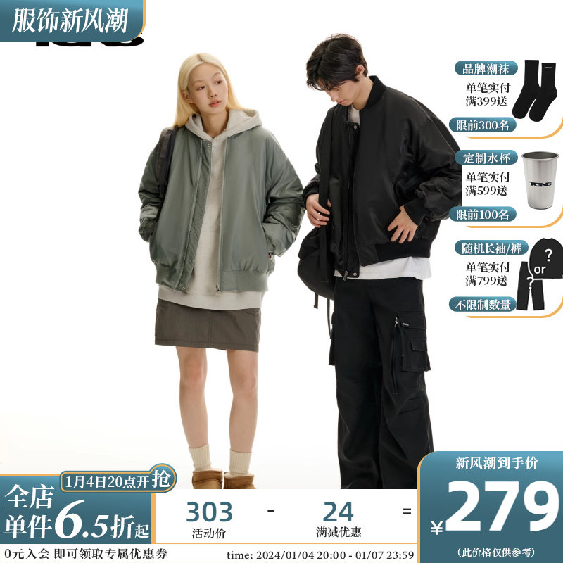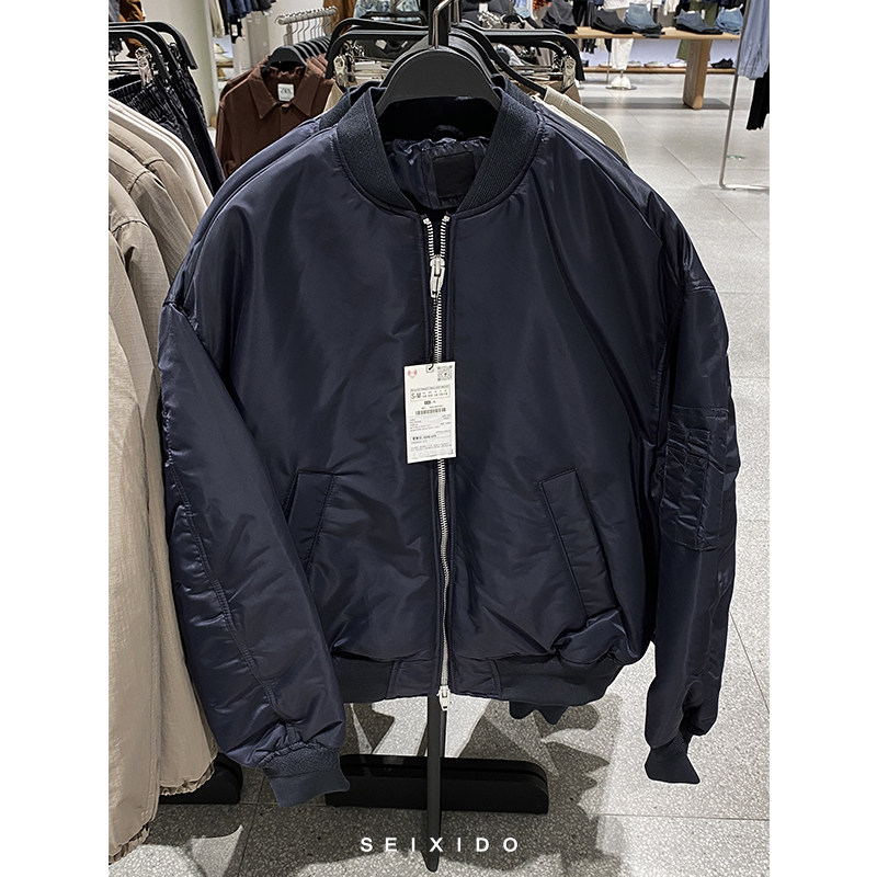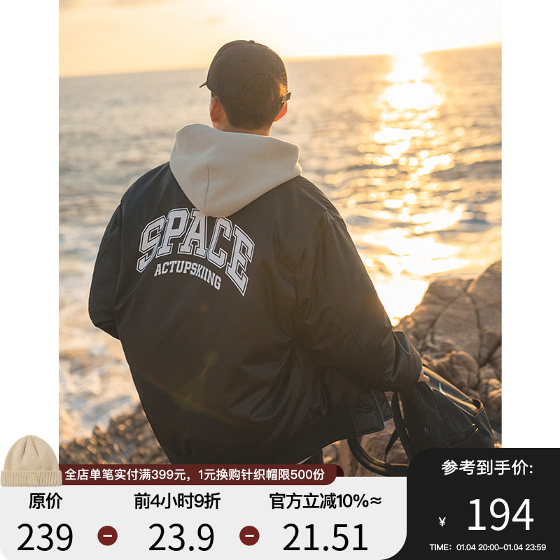 U家试衣间夹棉加厚秋冬男女同款经典MA1棒球领飞行夹克情侣款外套