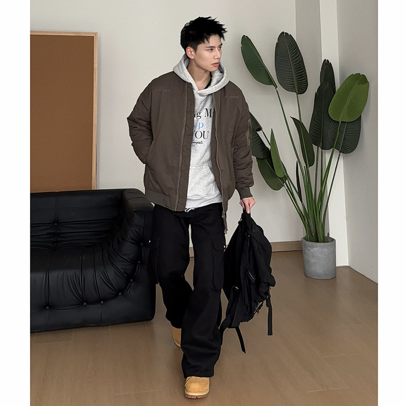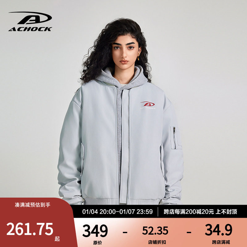 【Achock官方店】美式简约背后logo飞行员冬季夹克棉服加棉棒球服