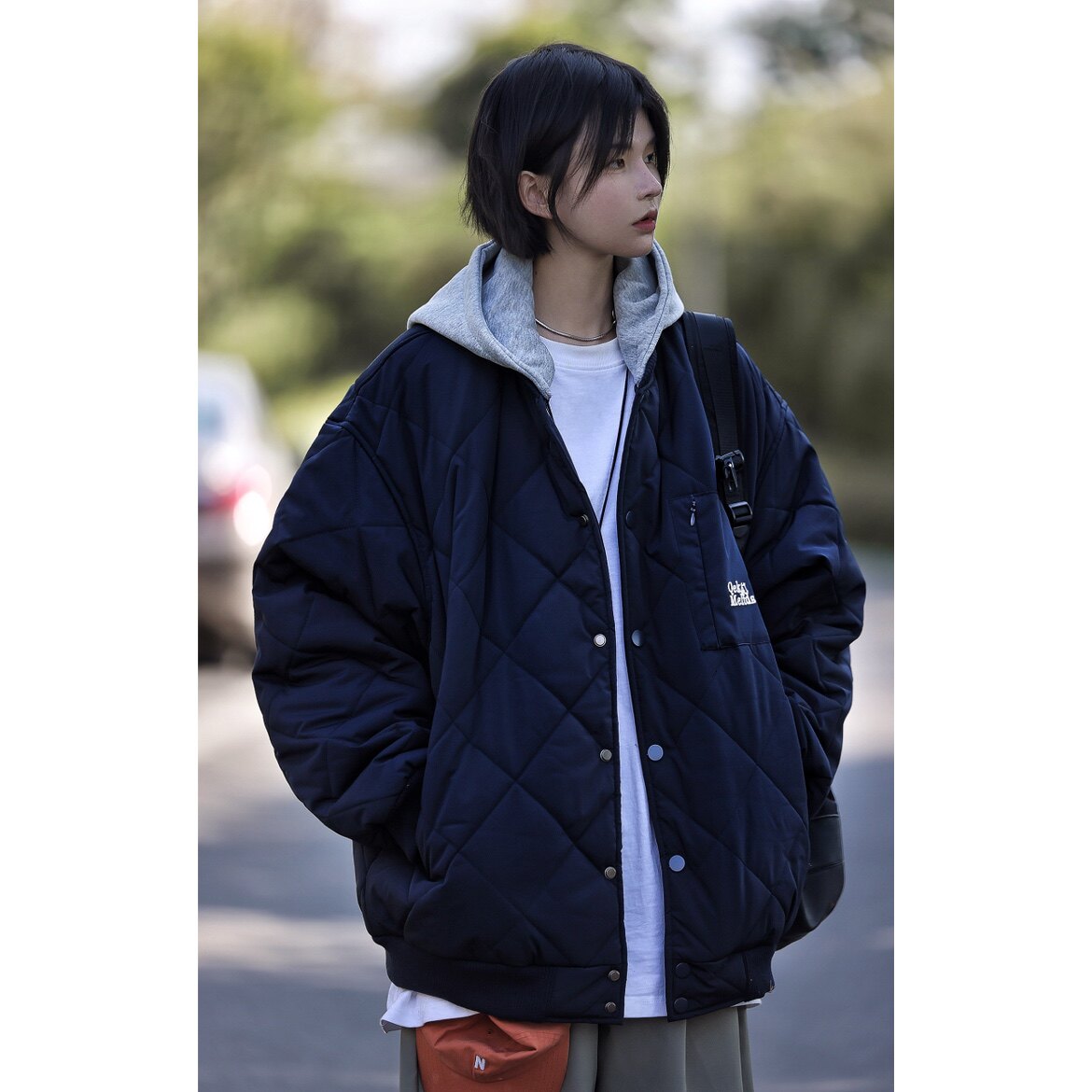 SYNEZS男女欧美宽松oversize加厚连帽棒球服棉服飞行夹克上衣外套