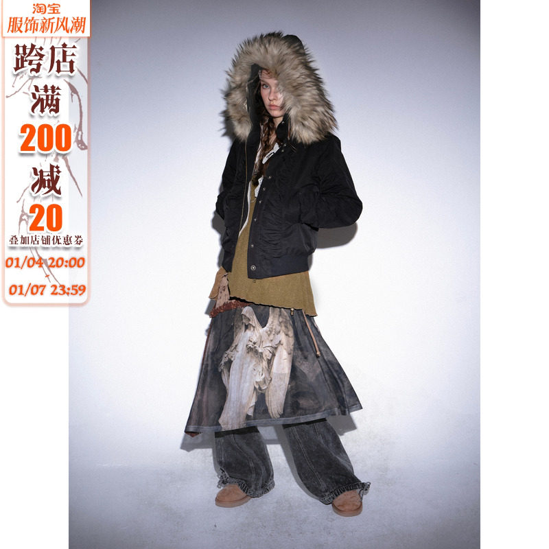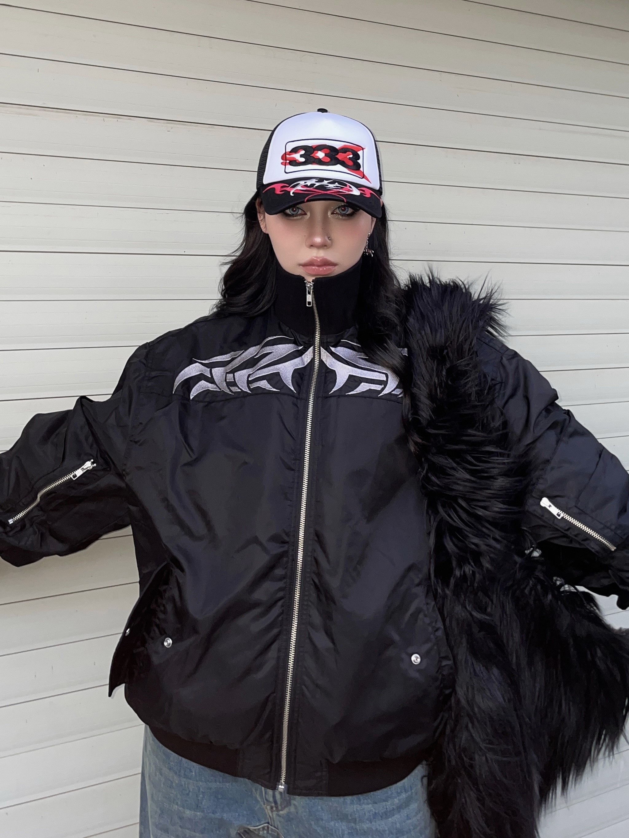 [PCCVISION] 3MAN0N 图腾ma1刺绣黑色棉服大口袋长袖宽松飞行夹克