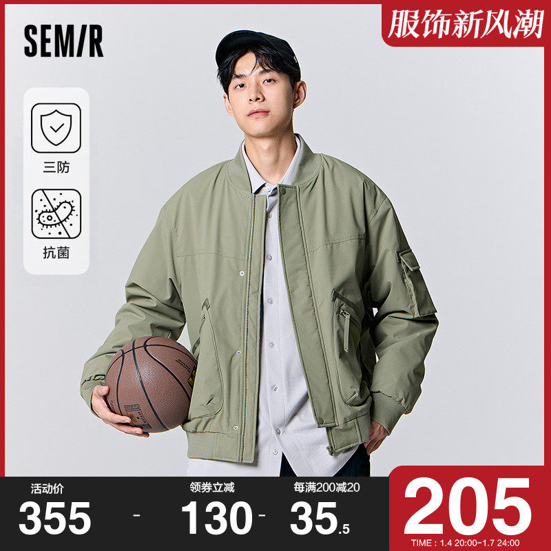 森马棉服男2023冬季新款男士飞行员夹克外套宽松军绿色夹棉棒球服