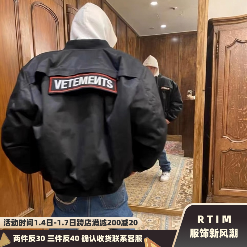 现货 VTM保安魔术贴刺绣飞行夹克棉服bomber羽绒服OS廓形欧美外套