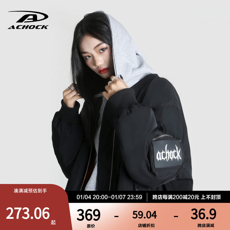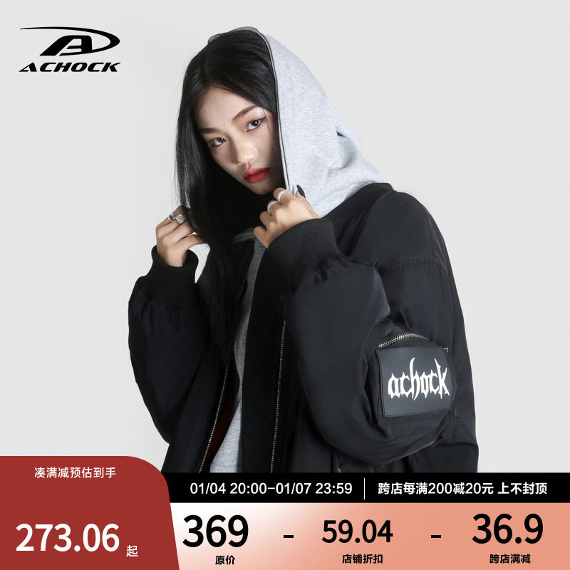 【Achock官方店】原创潮牌冬季徽章厚拉链飞行夹克棉服纯色棒球服