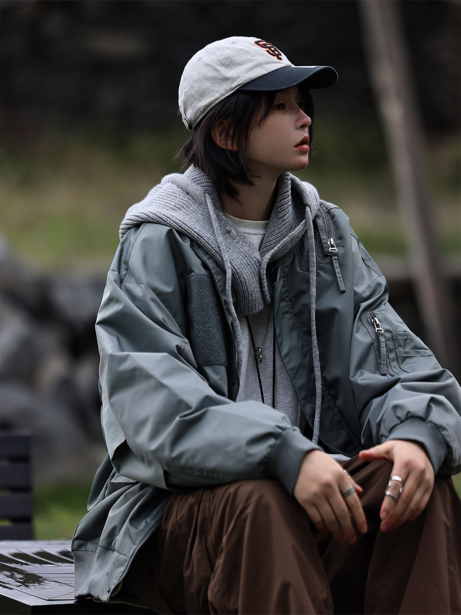 云朵工厂飞行员眼镜连帽夹克拼色宽松休闲上衣保暖工装外套新
