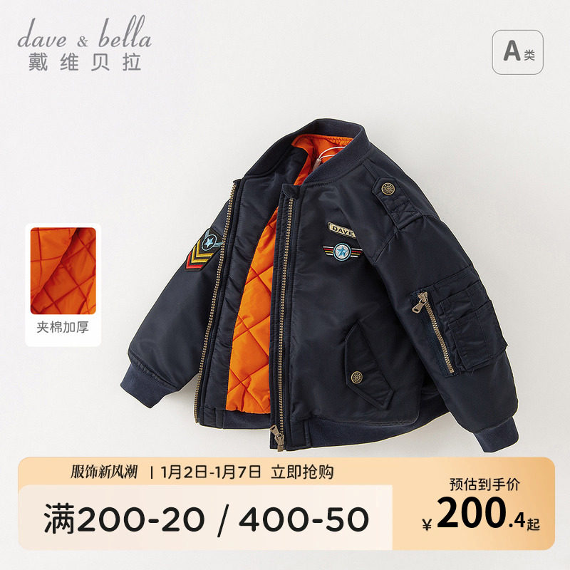 戴维贝拉儿童外套冬装2024新款男宝棒球服男童飞行员夹克棉服棉袄