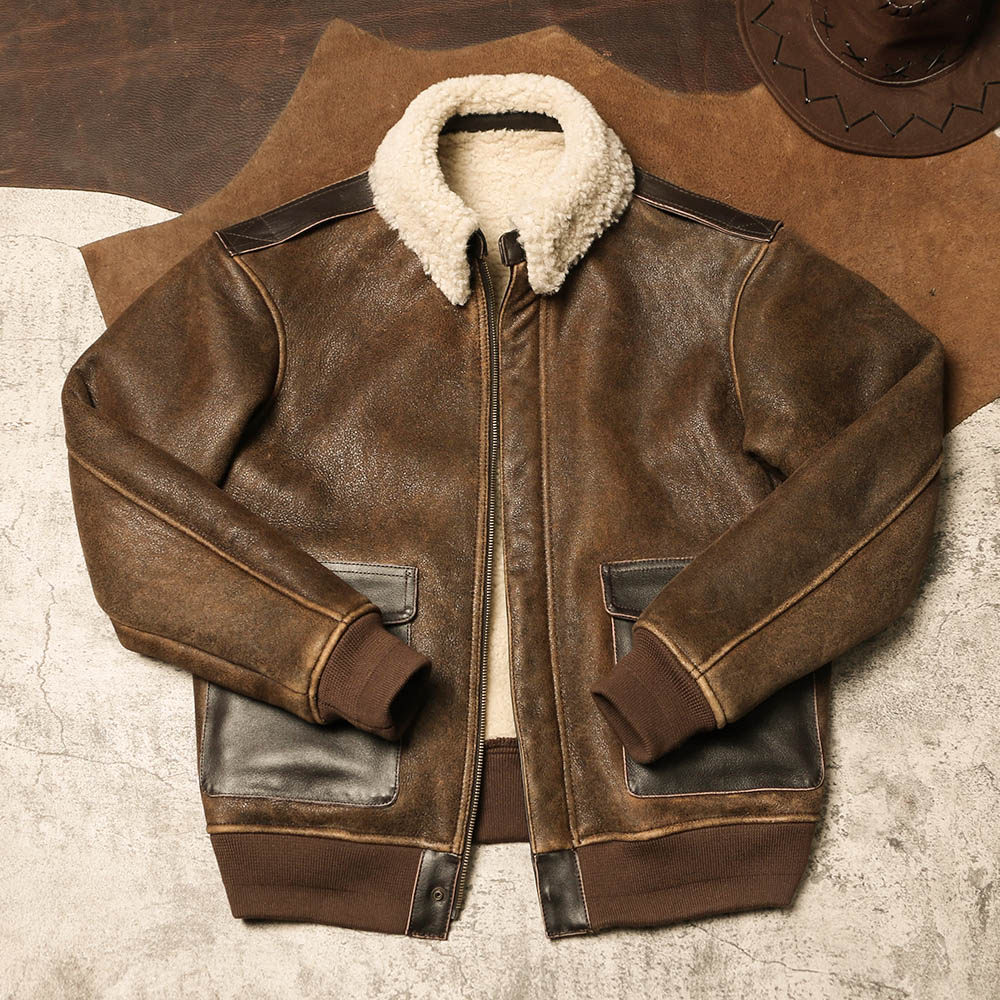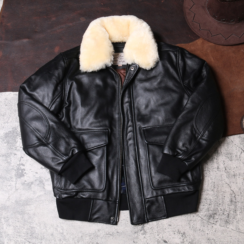 美式大码宽松皮夹克 秋冬加棉G1真皮飞行服 男女同款头层牛皮外套