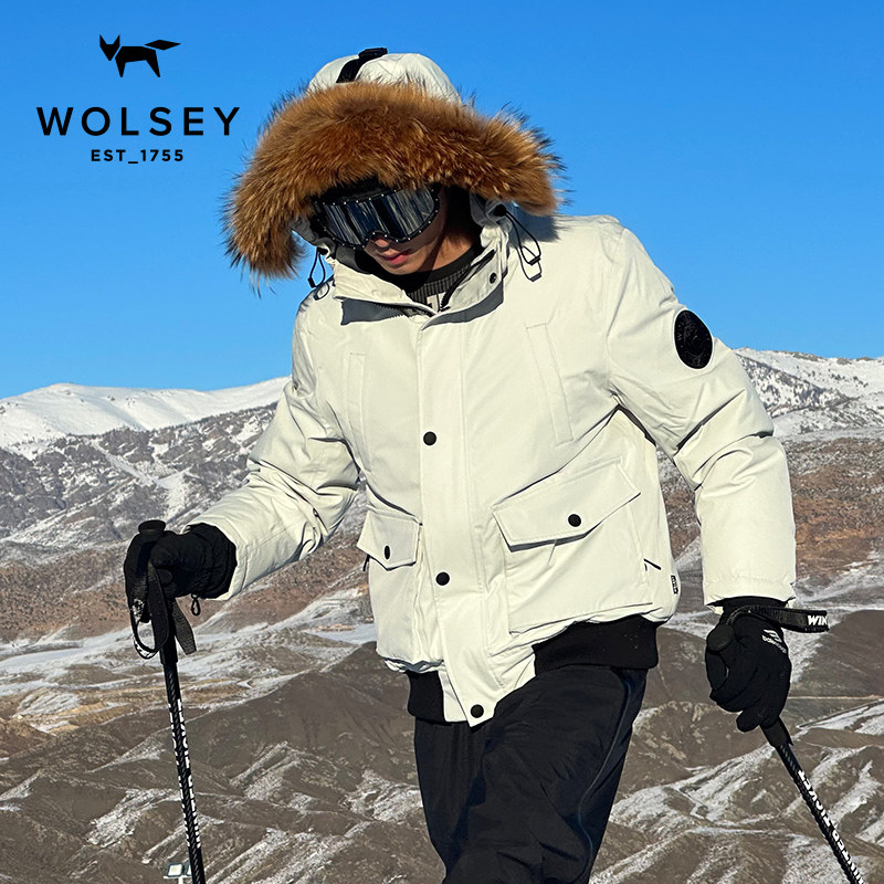 Wolsey创变者鹅绒服真毛领户外防风工装男士短款飞行员夹克羽绒服