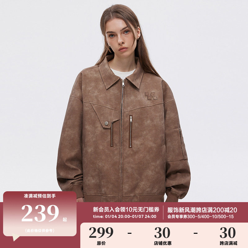 美式复古飞行服男女通用2023秋冬季宽松机车棒球棉服夹克工装外套