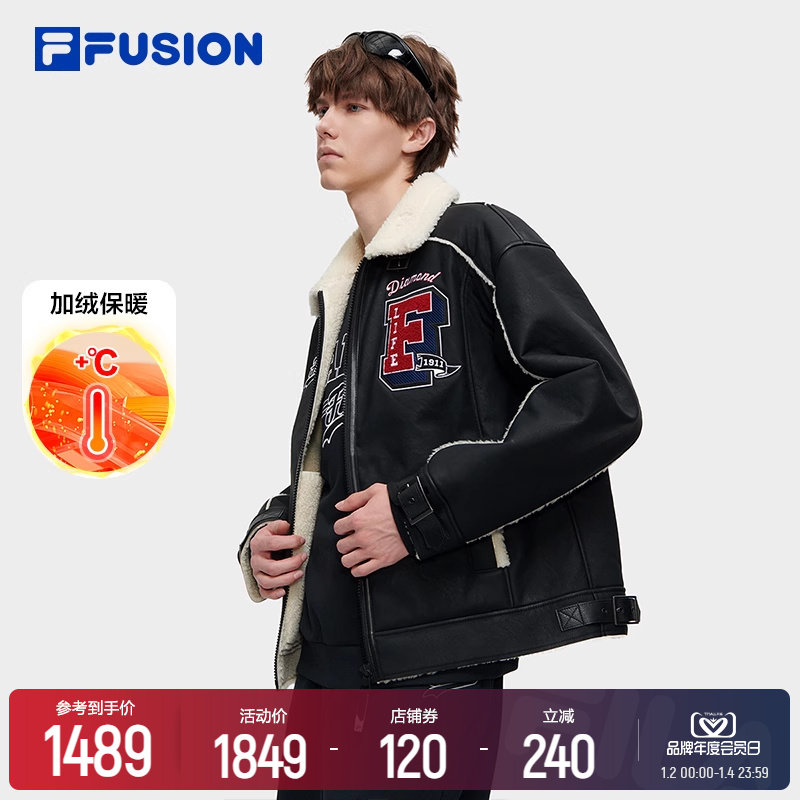 FILA FUSION斐乐潮牌复古外套2023冬季保暖拼接仿羊羔绒飞行夹克