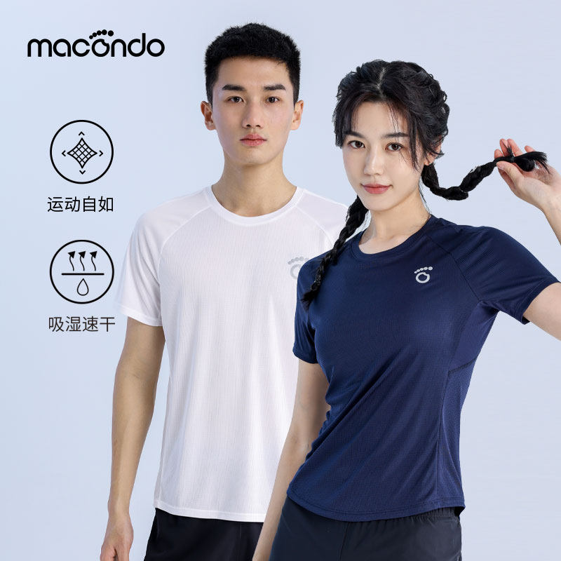 马孔多跑步速干t恤男女网布拼接速干衣透气健身马拉松运动短袖6代
