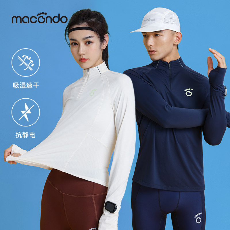 马孔多速干衣T恤男女健身吸湿抗静电半开拉链运动跑步长袖上衣