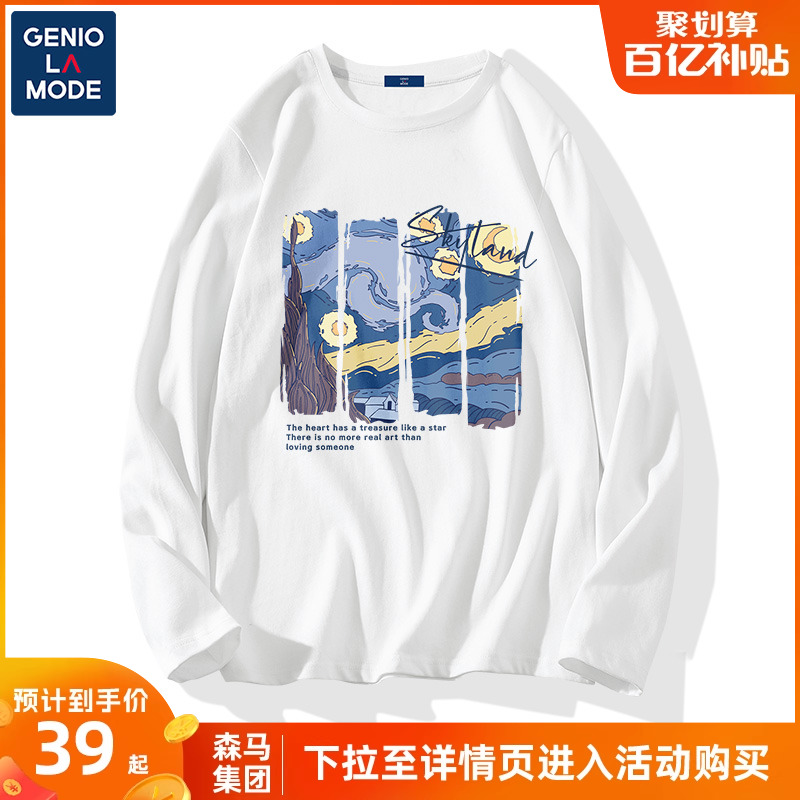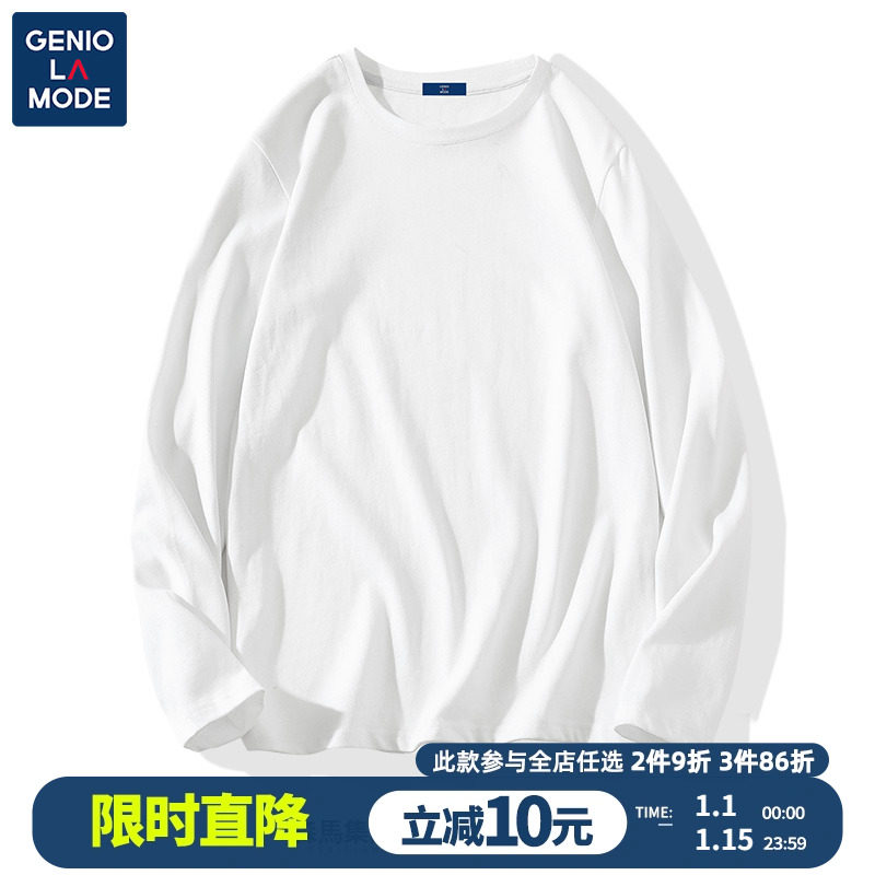 森马集团GENIOLAMODE白色打底衫男士秋季衣服纯棉男生长袖t恤男款