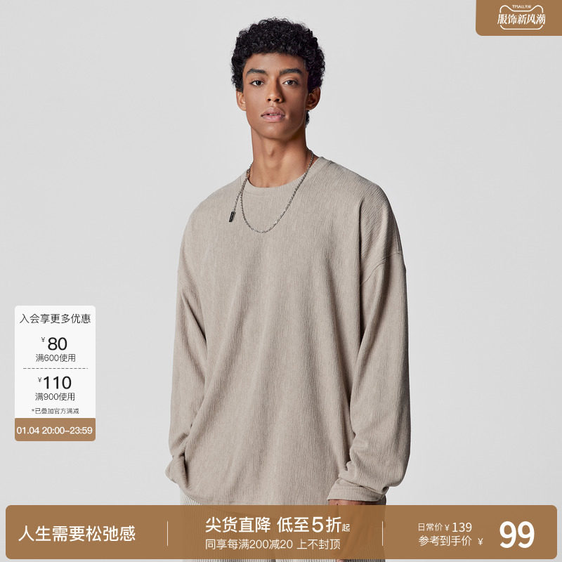 BODYDREAM长袖美式复古t恤男士秋装上衣圆领垂感纯色打底衫男装
