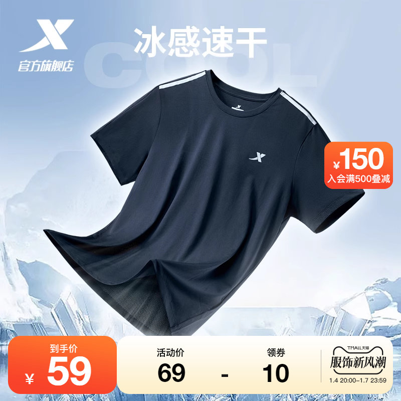 特步运动短袖T恤男夏季速干衣男装宽松冰丝上衣体恤健身训练半袖