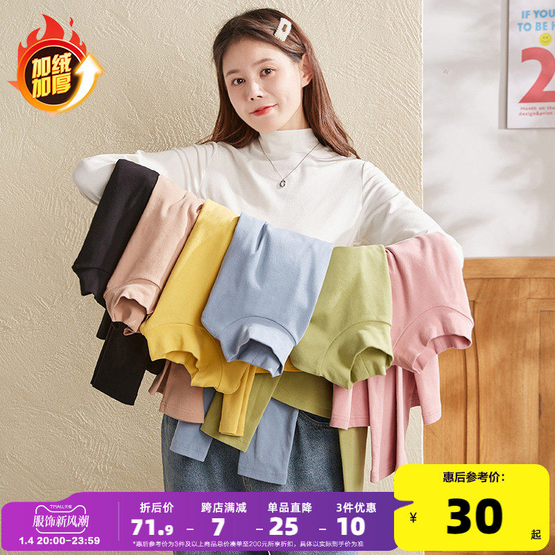 单/两件装双面加厚德绒半高领秋冬保暖打底衫修身百搭长袖t恤女服
