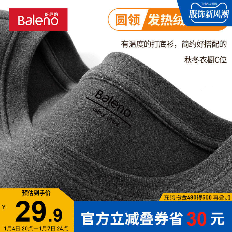 班尼路秋冬双面加绒打底衫男重磅230g圆领长袖t恤加厚保暖内衣