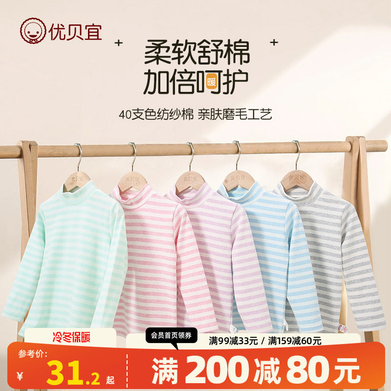儿童磨毛条纹高领打底衫秋冬装男童保暖T恤女童厚秋衣中大童上衣