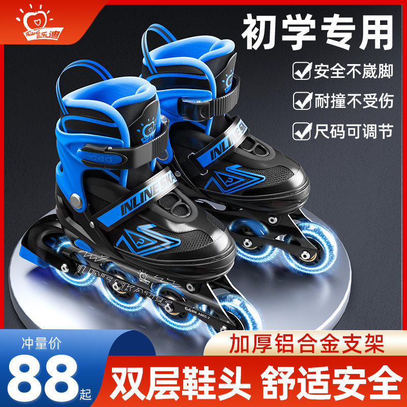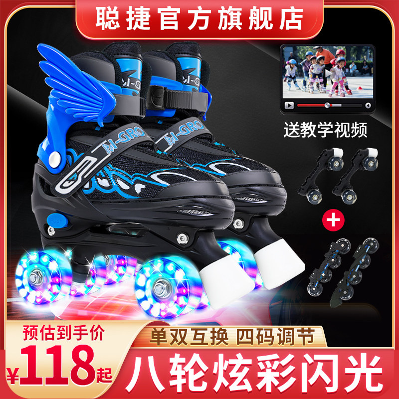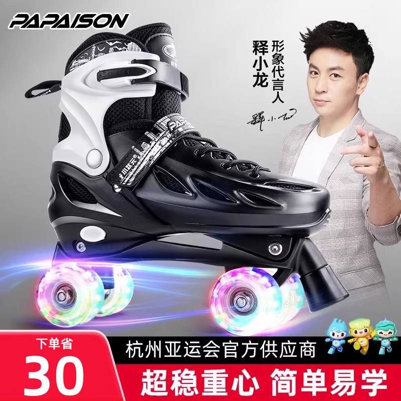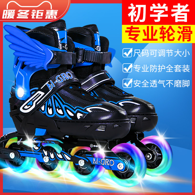 双排溜冰鞋成年滑轮闪光儿童四轮初学者滑冰男女旱冰轮滑成人大人