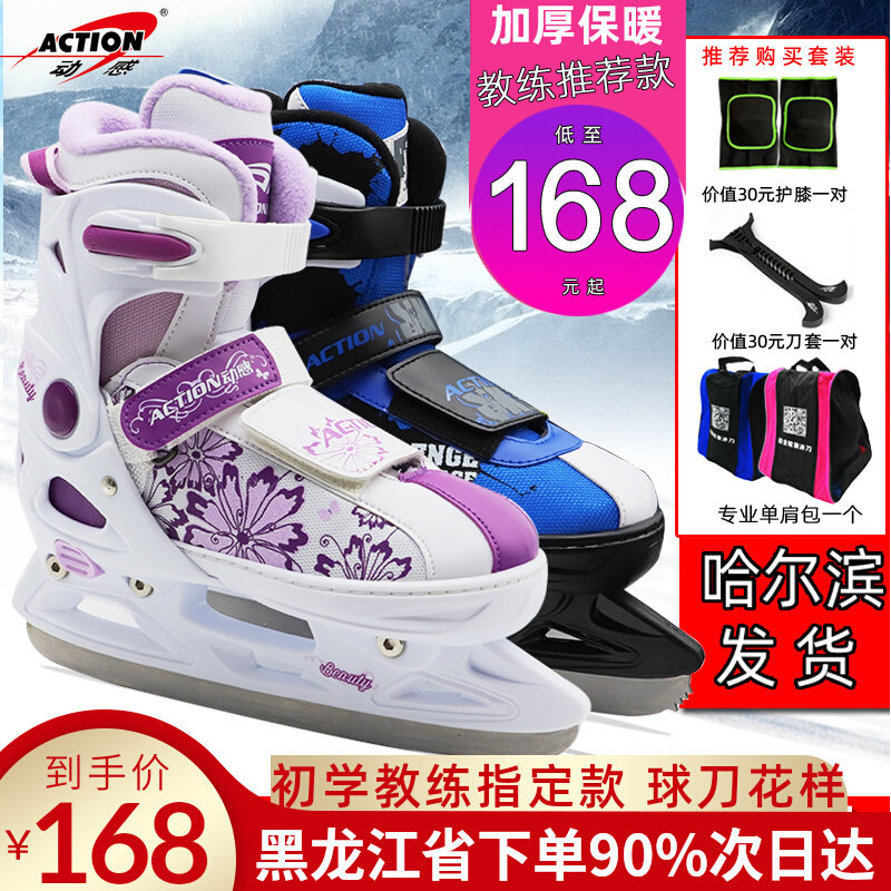 动感新款冰刀鞋 男女儿童初学不锈钢刀保暖溜冰鞋 花样冰球滑冰鞋