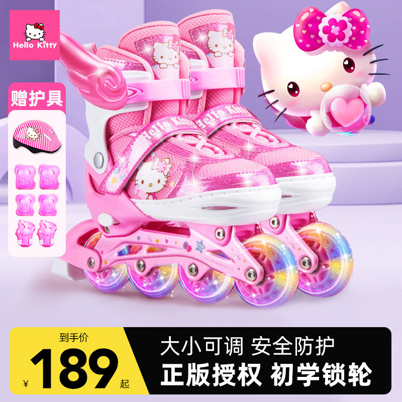 迪士尼儿童全套装溜冰滑冰鞋旱冰轮滑初学者女童女孩正品专业可调